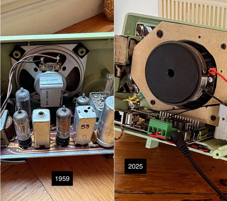 I am not sure how much time I put into this—perhaps 20 or 30 hours? More than half of that time was researching various things like what would fit where, how to make a push button out of the old volume knob, the process of restoring plastic, or how that Telechron clock even works. ChatGPT turned out to be extremely helpful in answering a lot of these questions.
